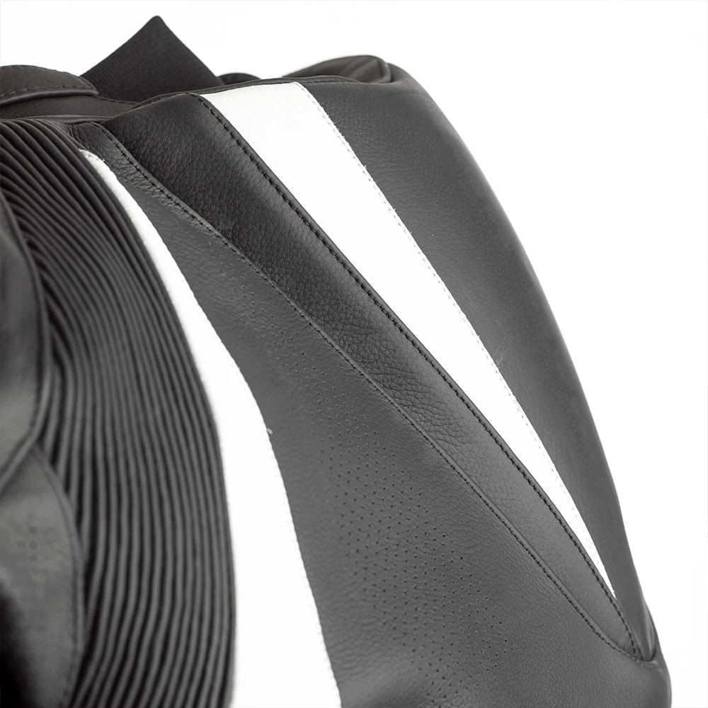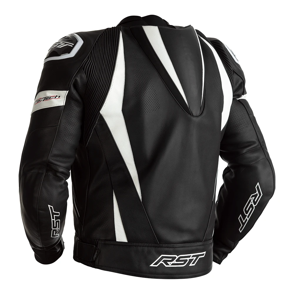 RST TracTech Evo 4 Leather Jacket White CE Approved -Trail Blazers Gear 102357 rst tractech evo 4 leather jacket black white detail hump 1 3