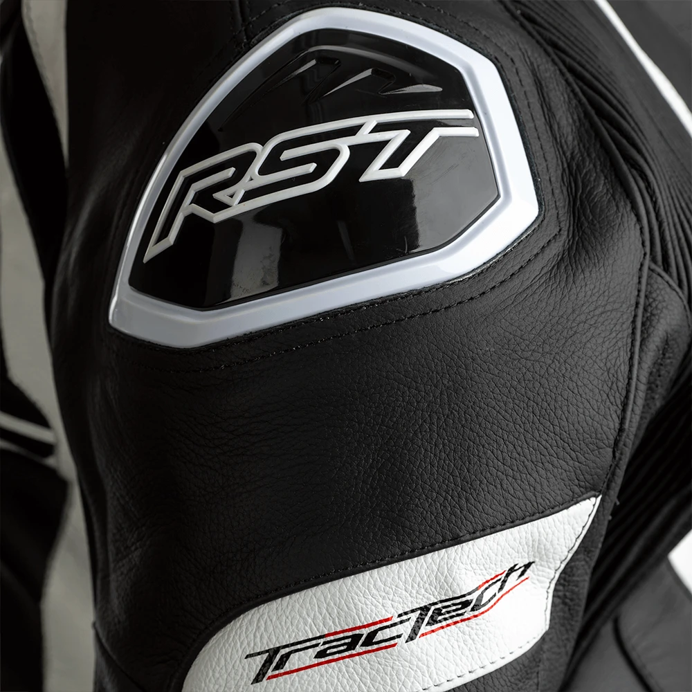 RST TracTech Evo 4 Leather Jacket White CE Approved -Trail Blazers Gear 102357 rst tractech evo 4 leather jacket black white detail shoulder 1 3